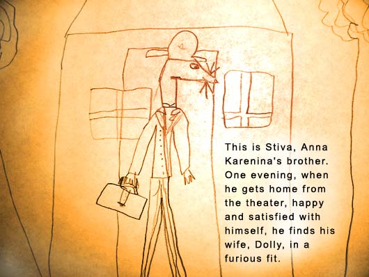 Packing We are packing for the journey south and don't know what to take---or what NOT to take, since the limit is one (just one) suitcase for each family member. One pair of jeans. A toothbrush. Books. Journals. Snacks. It will take us four weeks to get there---by car, plane, ship, and hopefully a lot of walking. RJE wants to fill her suitcase with Harold the Bear, Yumi the Pillow, and a collection of baby blankets that are a little too dirty to go on a trip. In the meantime, we have had some time for Anna, after all, and it begins here: Anna Karenina #1