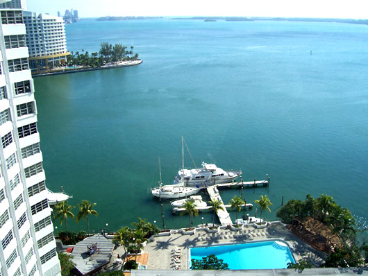 Birthplace We are back in my hometown---Miami, Florida. Saw the hospital where I was born and the apartment where we lived until I was three weeks old (they kicked us out becase the building didn't allow children). Dad says that most of the buildings in this neighborhood were not here back then. There is a lot of construction going on. One new concrete building after another. When our plane was landing in Miami, RJE said, "Those are skyscrapers. I've heard about them." Today we walked to the supermarket a few blocks away. There was so much dust from the building sites, and traffic, and noise, and litter everywhere. Mom showed me the building where she used to work right before I was born. This is what we see out the window today: