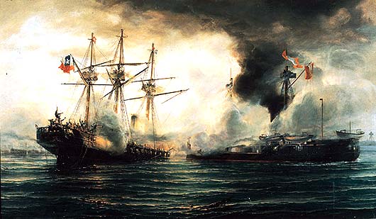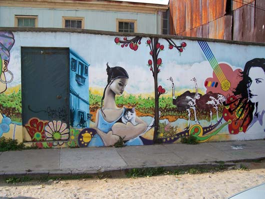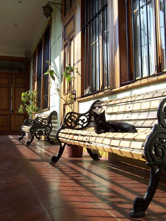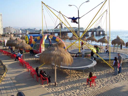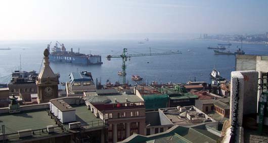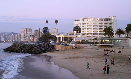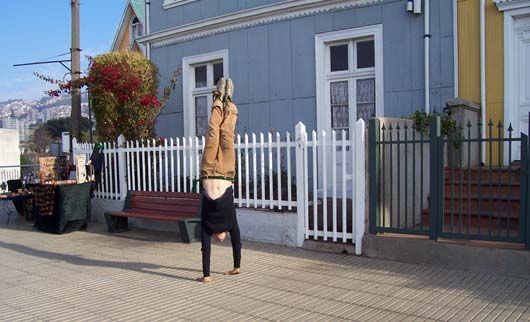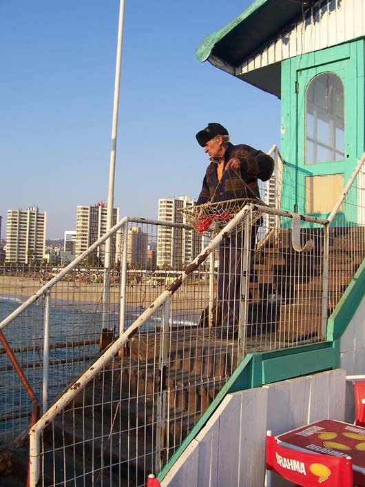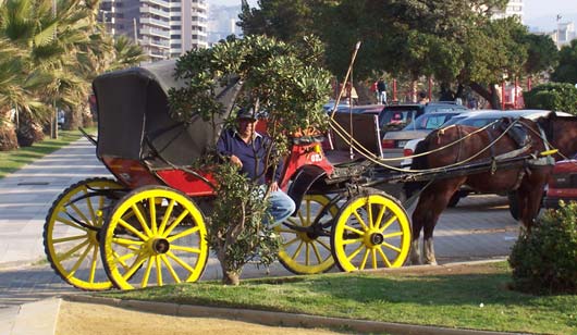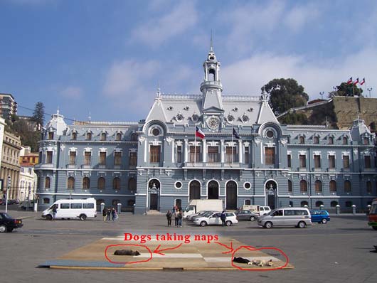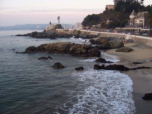 Sick There's an epidemic going on at our school. More than seven students in my class are out sick, me included. One class had FIFTEEN kids absent yesterday. It's a virus that first makes you feel cold, then tired, then your stomach shouts in pain before your head brings you down to bed, where I have been for two days. Because of being sick, I've missed two tests. That's a good thing because I wasn't ready for them anyway. I also haven't felt like writing RatSoap until now. The reason I wasn't ready for the tests was that last Monday (May 21st) was a holiday, and to enjoy the long weekend, we went to the coast with my aunt. Every year, Chileans remember the Naval Battle of Iquique on May 21st. The battle took place in northern Chile in 1879 between Chile and Peru. You can learn more about it here. Our trip to the coast meant seeing the Pacific Ocean one more time. We had not seen it since we arrived in Valparaíso last December. This time we went to Viña del Mar, which is right next to Valparaíso. We rode a bus there from Santiago. It took only about 90 minutes to get to downtown Viña. One of the first things we saw there was a line of "Victorias," which are horse-drawn carriages that take visitors on a tour of the city center. Instead of hiring a Victoria, we and our backpacks walked nineteen blocks to the hotel. After we checked in, we did more walking along the beach. It was beautiful and the weather was great. Because it was a long weekend, there were many tourists and artists and people selling all kinds of items---purses, bags, earrings, jewelry, scarves, paintings, etc. There were also games... And too many buildings... On a tall old pier, we saw several men crabbing, using the same techniques as crabbers in the Virginia. That first night we stayed out until sunset. Dad says that right when the sun goes under the horizon you can often see, for just a second, a green light called the Green Ray. But we couldn't see it this time because there were a few clouds right on the horizon. ---------------- The next morning we took the metro to Valparaíso, which is the most important port in Chile. When we arrived there in December, we didn't have a chance to see anything because we traveled right away to Santiago. This time, we saw a lot. The city is very hilly and most of the houses and buildings are high up. To get to them, you can walk or take a funicular. There are many funiculars in Valparaíso, and they all seem very rundown. The one we took creaked all the way up and felt like it was falling apart. There are many interesting things in this port city. One of them is all the cats and dogs everywhere. They seem to really enjoy life, sleeping all day wherever they want. Here are three at a plaza in front of an Army building: Many houses have pets on the windowsills, benches, and yards. Another interesting thing is the way houses and buildings are painted---with bright colors (like fruit) or murals. Many of the city's narrow streets or sidewalks feel like balconies high up on the hill. Along them, there are restaurants and more vendors. This vendor was not selling much so he started doing handstands to pass the time: Mom bought a pair of earrings from him. He makes all the jewelry himself, out of recycled material. For example, the copper wire on Mom's earrings came from an old TV set: Back in Viña that evening, we walked and walked and saw a couple of castles... ...a casino...