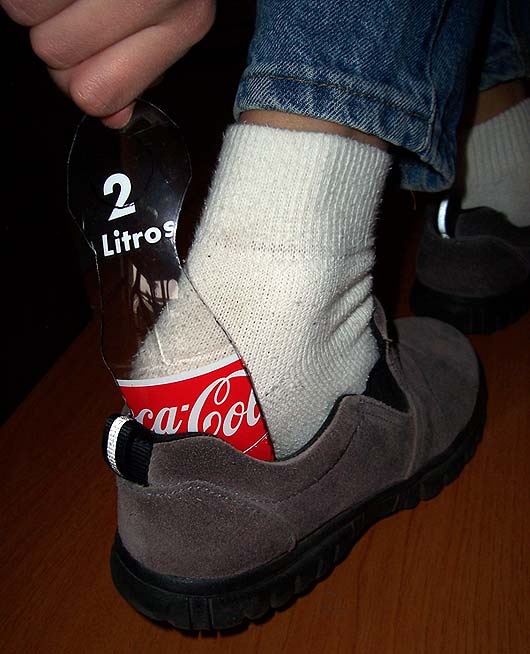 Dad made a panoramic photo of the mountain range out of several photos that he took this morning. (Click on the photo below to see a larger version of it.) ------------------ In science (the class with the strict teacher), we are on the chapter about reducing pollution by recycling what we use. The project was to bring something to school you had made that was useful and recycled. I came up with a shoehorn made out of a Coca-Cola bottle that we had from one of my aunt's parties when she was here.