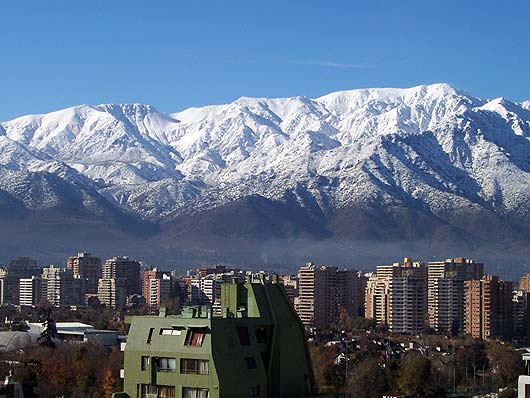 I didn't like it. It was chewy and slimy. Dad said it was like eating leather hotdogs. RJE didn't even try it. Mom said it was OK, one time. Since the bundle was huge, we still have a lot left (uncooked), and will try making some other Chilean recipes with it, like charquicán, which is mashed potatoes with pumpkin and horse meat. For vegetarians, though, they replace the meat with cochayuyo. For another recipe with this seaweed, click here. ------------------ In language and communication class, we are reading a play. It's not just any play but one written for children about racism. Everyone in the class has to memorize one character. Some of the characters are children playing with lead soldiers. Each child is of a different race or religion. One boy is Chinese. Another one is white. Another black. And one is Jewish. At first, I got the role of the Jewish boy, but he had the most lines, and because I can't speak very well or memorize so much dialog in Spanish, they changed me to the Chinese boy, who has the least to say. As the children play with the toy soldiers, they start fighting and calling each other awful names. Unfortunately, the Chinese boy has to yell and fight with the others. He even calls one of the boys "Animal!" ------------------ This week, we had several days of rain (we had to ride taxis to school). The sun finally came out today, and we could see what we will probably miss the most about Santiago when we leave---the mountains covered with snow.