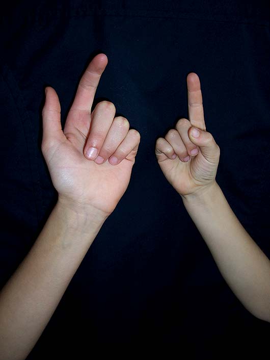When you raise your hand in class in Virginia, you usually do it as in the photo above. But RJE noticed that, in Chile, the students do it like this: