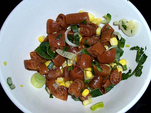 In Chile, it is called cochayuyo, and Dad says it's a type of kelp (seaweed). The owner of the store said that she liked it in salad, and that it was also good with potatoes. Mom cooked some tonight and made it into a salad with corn, onions, and parsley.