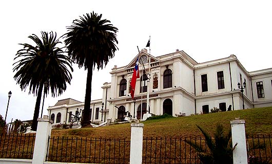 It has large windows where you can watch the ships coming in and out of the harbor, or just look at all the houses and windy streets on the hill below. Both nights we were there we went to a restaurant a few yards up the hill on the "Paseo 21 de Mayo" and just below the old Escuela Naval (Naval Academy) where my grandfather went to school for two years.