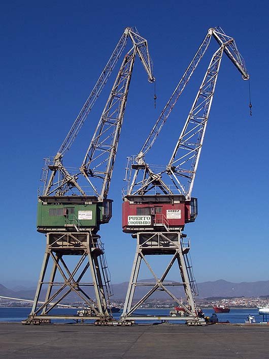 I really don't like Coquimbo because it is not very special. Plus, we had already seen it before, so we didn't do much there this time. One thing that was interesting was the two old cranes at the port that look like two old dinosaurs: