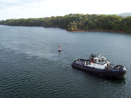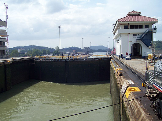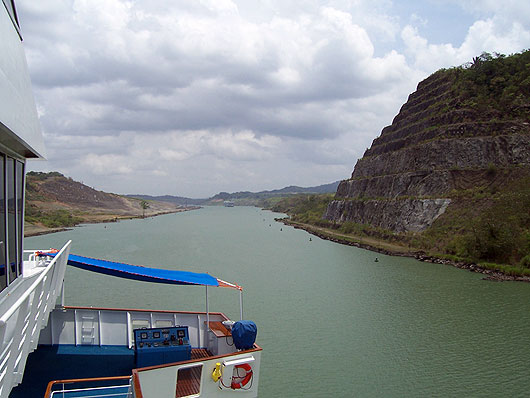 After the cut, the ship arrived at the main lake, called Gatún Lake.